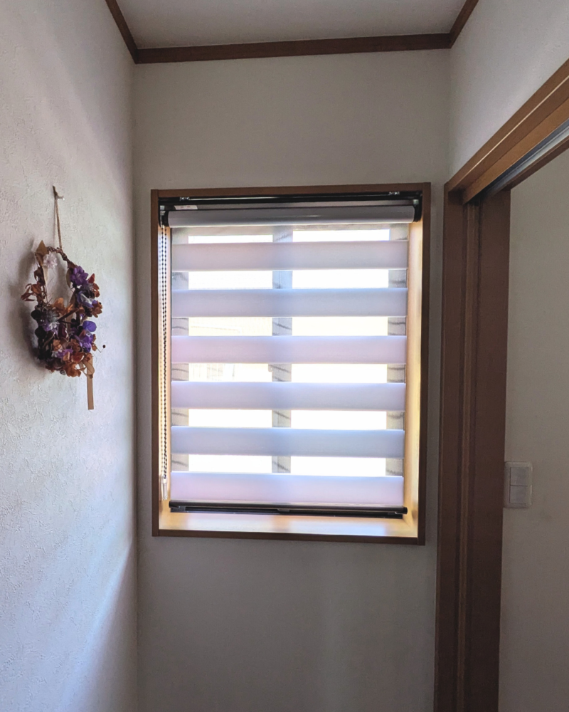 元々プリーツスクリーンが据えられていた玄関の窓。