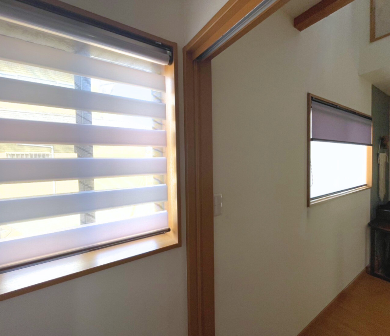 幅のある窓にはレース付きのロールスクリーンを採用しました。