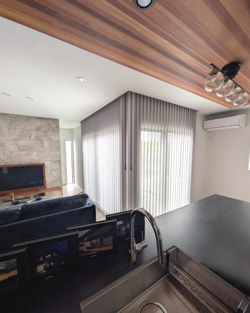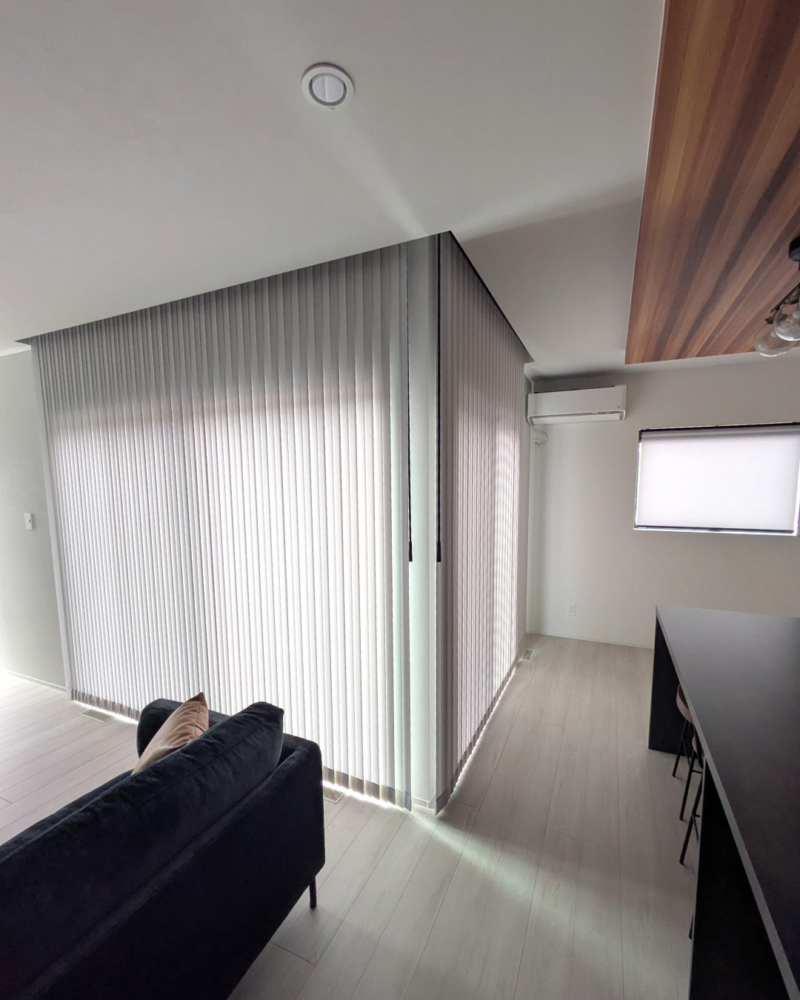 こちらのコーナー窓にぜひバーチカルブラインドを据えたいとご来店くださいました。