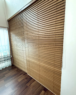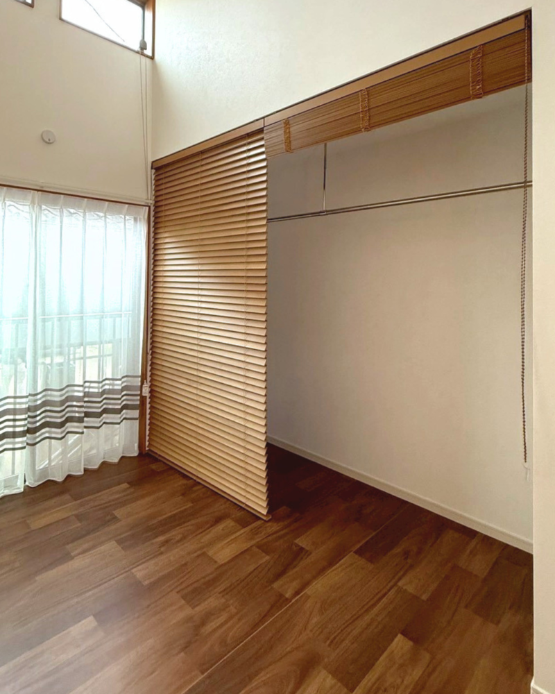 窓に隣接する収納スペースにウッドブラインドを据えられました。