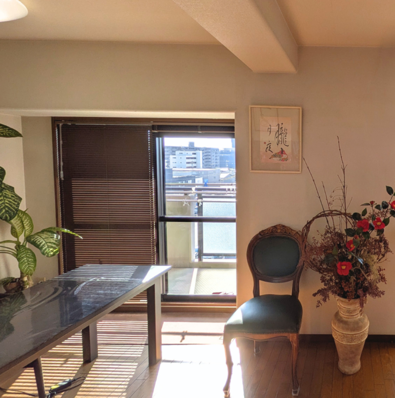 直射日光をやわらかく整えながら、床や壁に落ちる光と影が、時間帯ごとに異なる表情を生み出します。