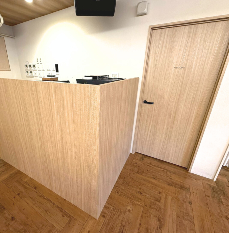 カウンターや建具は木目の美しさを活かした化粧シート仕上げにして統一感を出しています。