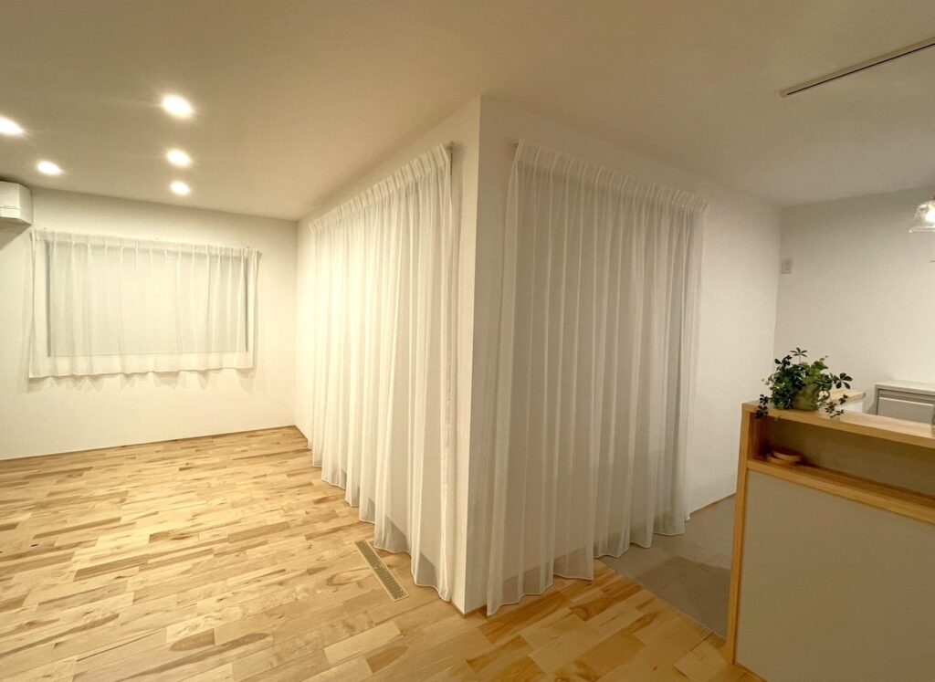 同時に、シアーカーテンがメインになるためお部屋側から見た時の圧迫感が軽減され、すっきりとした見た目に仕上がりました。