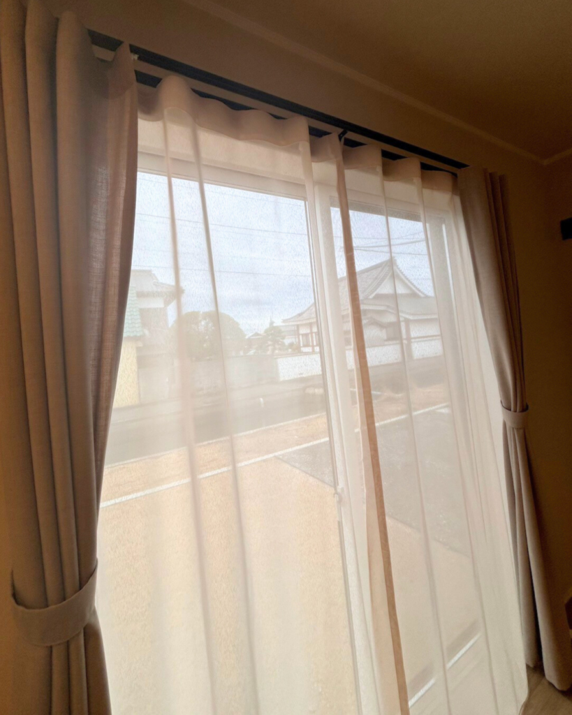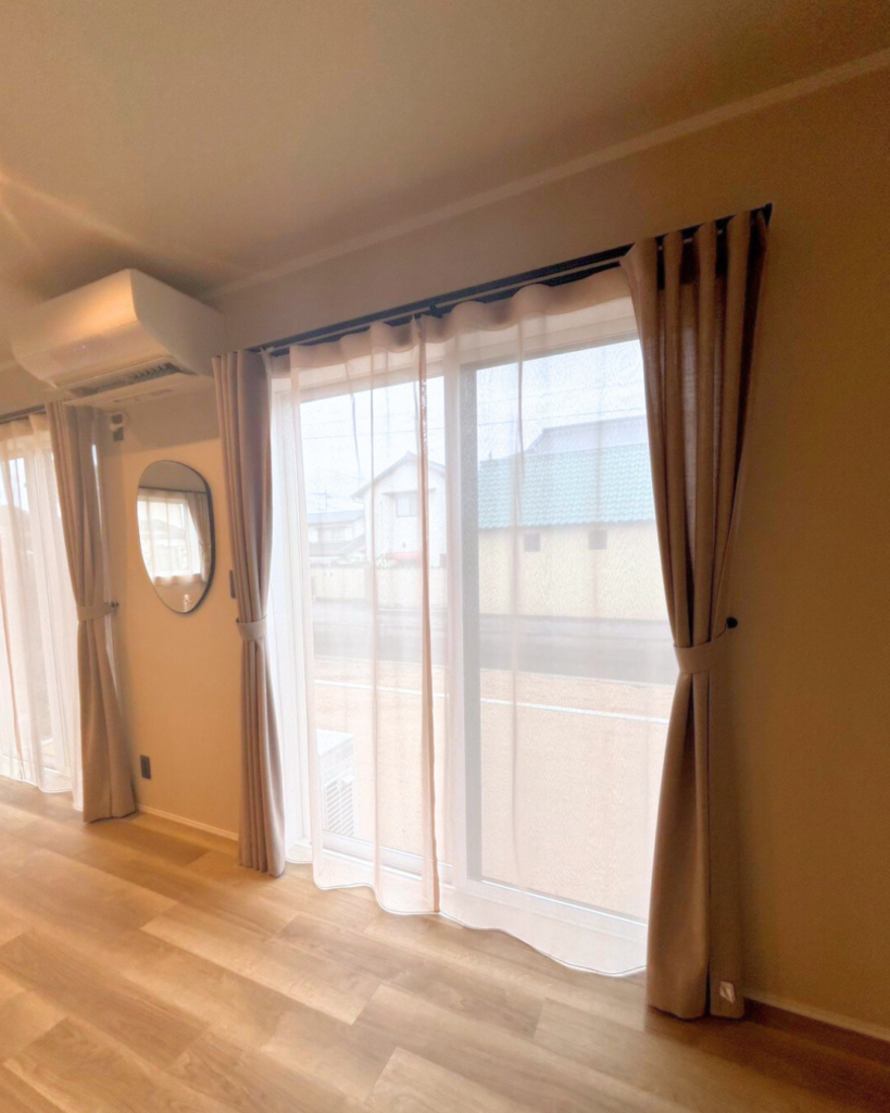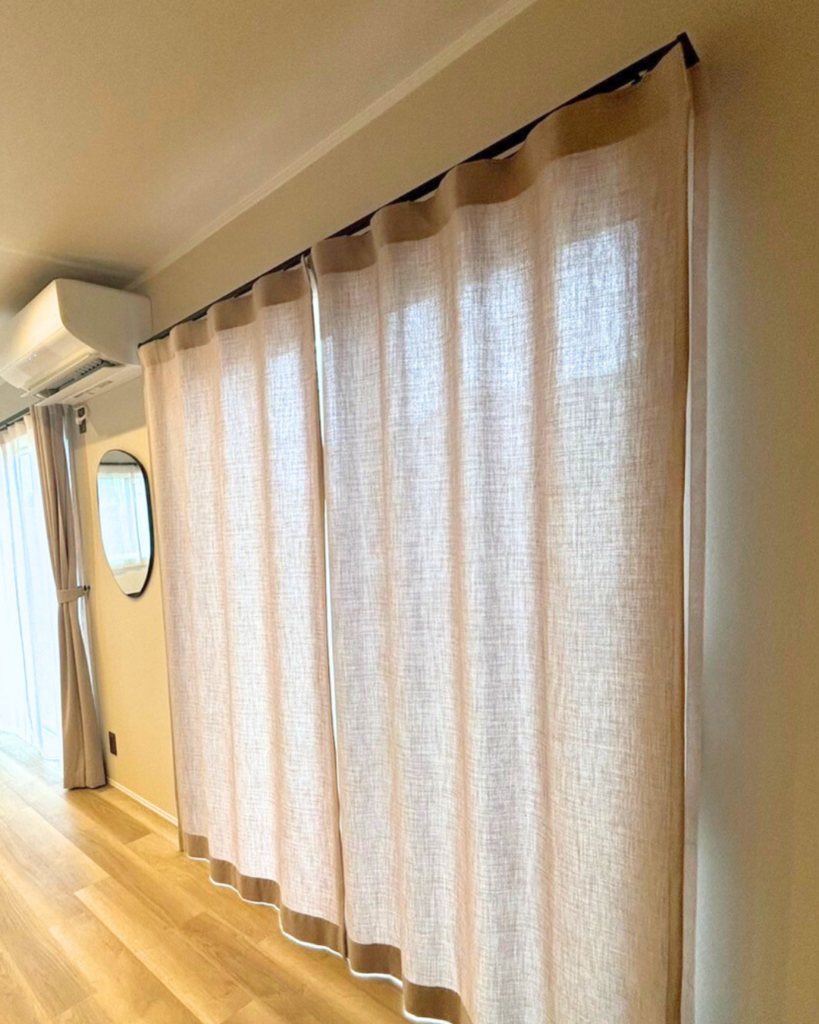あえてカーテンのヒダを取らない「フラットカーテンスタイル」はナチュラルな雰囲気と大変相性が良いスタイルです。