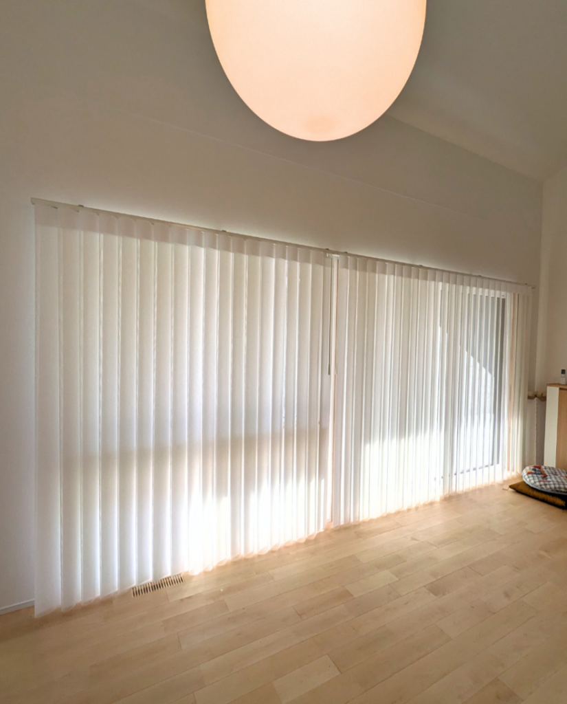 タテ型ブラインドのスタイリッシュさと、カーテンのやさしい雰囲気をあわせもつエアレ。