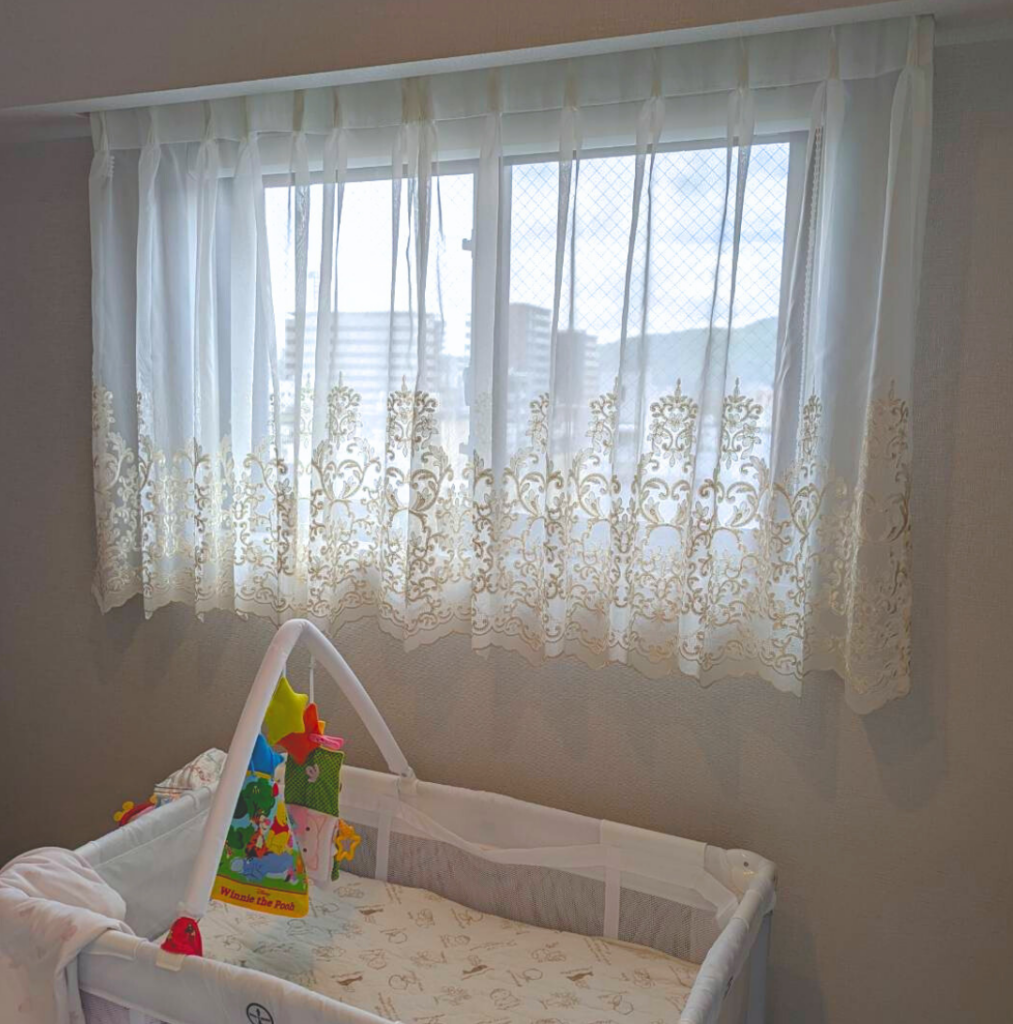 ふんわりと可憐な印象の刺繍カーテンがお好みで、それぞれのお部屋にお気に入りのレースを選ばれました。